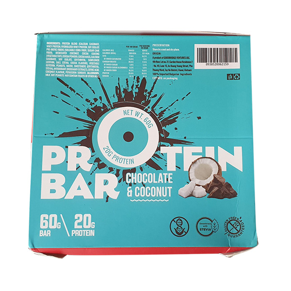 Hương vị chocolate nguyên chất hòa cùng lớp phủ coconut hảo hạng, đây chính là thanh protein dành cho các tín đồ của socola. Đối với những người bắt đầu tập gym, đau cơ khiến cơ thể mệt mỏi, khó chịu. Chocolate là giải pháp hoàn hảo cho tình trạng này, nhờ khả năng phục hồi tổn thương của cơ bắp, xoa dịu cơn đau do vận động nặng, đồng thời tạo sức bền suốt quá trình luyện tập. Hàm lượng Protein cao 33g/100g giúp bổ sung nhu cầu dinh dưỡng hàng ngày của bạn một cách nhanh chóng và tiện lợi.