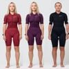 Điểm cộng cho các cô gái là thiết kế ôm vừa vặn tôn dáng thể thao, giúp bạn tự tin dù đang bơi, đạp hay chạy. Ba tông màu Wine Red – Black – Plum cũng tạo nên nét quyến rũ khác biệt, vừa nữ tính vừa mạnh mẽ.