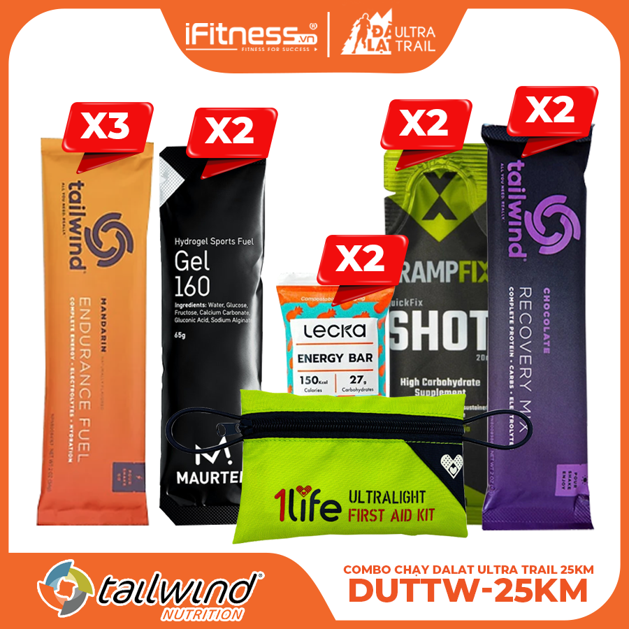 Bộ Combo Chạy Trail 25Km Tailwind là lý tưởng cho tất cả các buổi training hoặc chạy bộ kéo dài ở cự ly 25km. Bộ sản phẩm này là hoàn hảo để thưởng thức mẫu tất cả hương vị tuyệt vời của Tailwind Endurance Fuel
