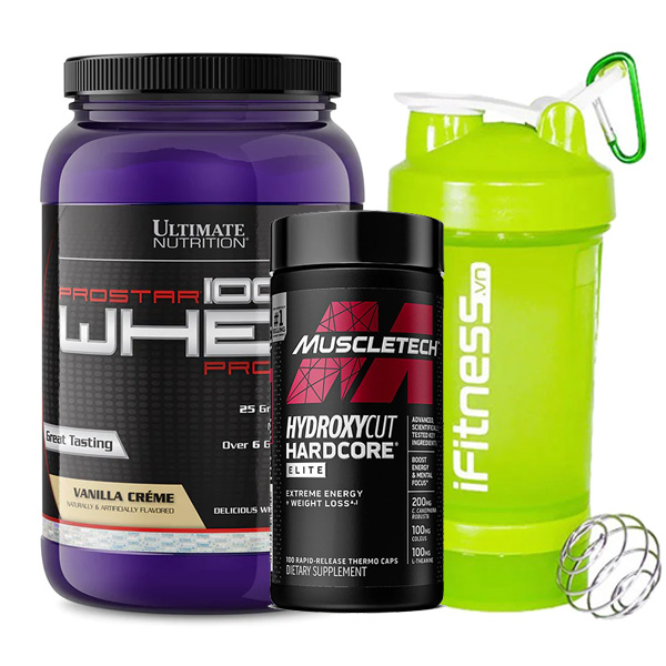 Prostar 100% Whey Protein với hàm lượng Protein cao nguyên chất, hầu như không chứa chất béo, đường, và tinh bột, phù hợp với mục tiêu tăng cơ giảm mỡ, duy trì cơ thể săn chắc. Kết hợp cùng viên uống đốt mỡ Hydroxycut Hardcore Elite cung cấp thành phần đốt mỡ ưu việt an toàn lành tính. Đây chắc chắc là BỘ ĐÔI VÀNG không thể thiếu giúp bạn đạt được vóc dáng mơ ước.
