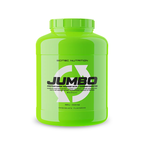 Scitec Nutrition Jumbo 3520g (16 lần dùng) là sữa tăng cân cao năng lượng được mệnh danh là “bom calo” dành cho người gầy. Mỗi khẩu phần 220g cung cấp khoảng 849 kcal, với 53g protein chất lượng cao và 140g carbohydrate cùng hàng loạt creatine, amino acid, vitamin và superfood. Công thức Jumbo giúp bạn tăng cân, tăng cơ hiệu quả vượt trội, hương vị thơm ngon, đọc vào là muốn mua ngay!