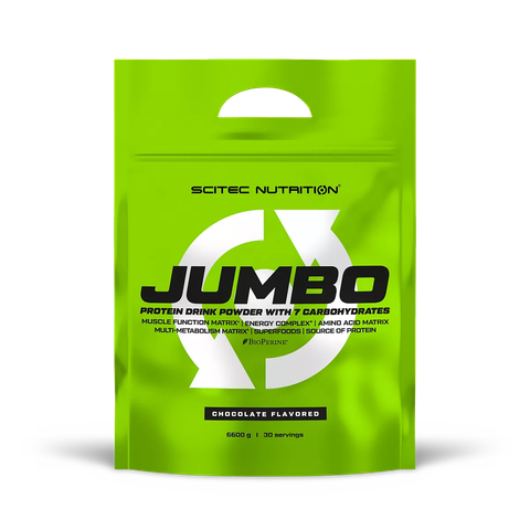 Scitec Nutrition Jumbo 3520g (16 lần dùng) là sữa tăng cân cao năng lượng được mệnh danh là “bom calo” dành cho người gầy. Mỗi khẩu phần 220g cung cấp khoảng 849 kcal, với 53g protein chất lượng cao và 140g carbohydrate cùng hàng loạt creatine, amino acid, vitamin và superfood. Công thức Jumbo giúp bạn tăng cân, tăng cơ hiệu quả vượt trội, hương vị thơm ngon, đọc vào là muốn mua ngay!
