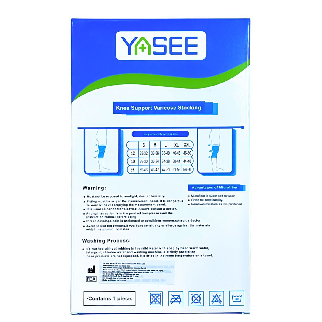 Tất Vớ Bắp Chân Y Khoa Yasee là dòng sản phẩm chuyên dụng trong hỗ trợ và phòng ngừa suy giãn tĩnh mạch bắp chân – tình trạng phổ biến ở người làm việc đứng lâu, ngồi nhiều, người cao tuổi hay phụ nữ mang thai. Vớ được thiết kế để ôm sát phần cổ chân đến gần đầu gối, tạo ra áp lực nén y khoa tiêu chuẩn, giúp cải thiện lưu thông máu và giảm triệu chứng như sưng phù, đau mỏi chân hay nổi gân xanh.